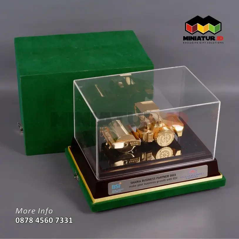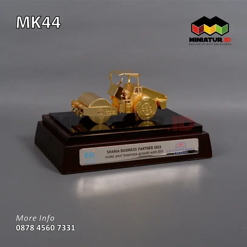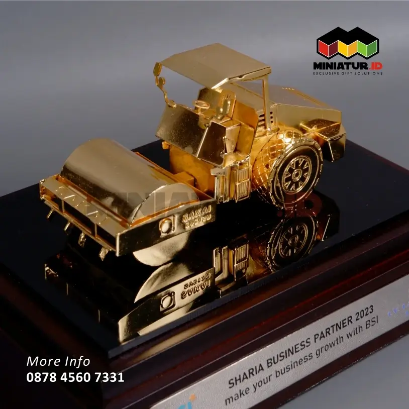 Mempersembahkan kerajinan seni miniatur model alat berat road roller untuk cinderamata maupun penghargaan acara Sharia Business Partner.