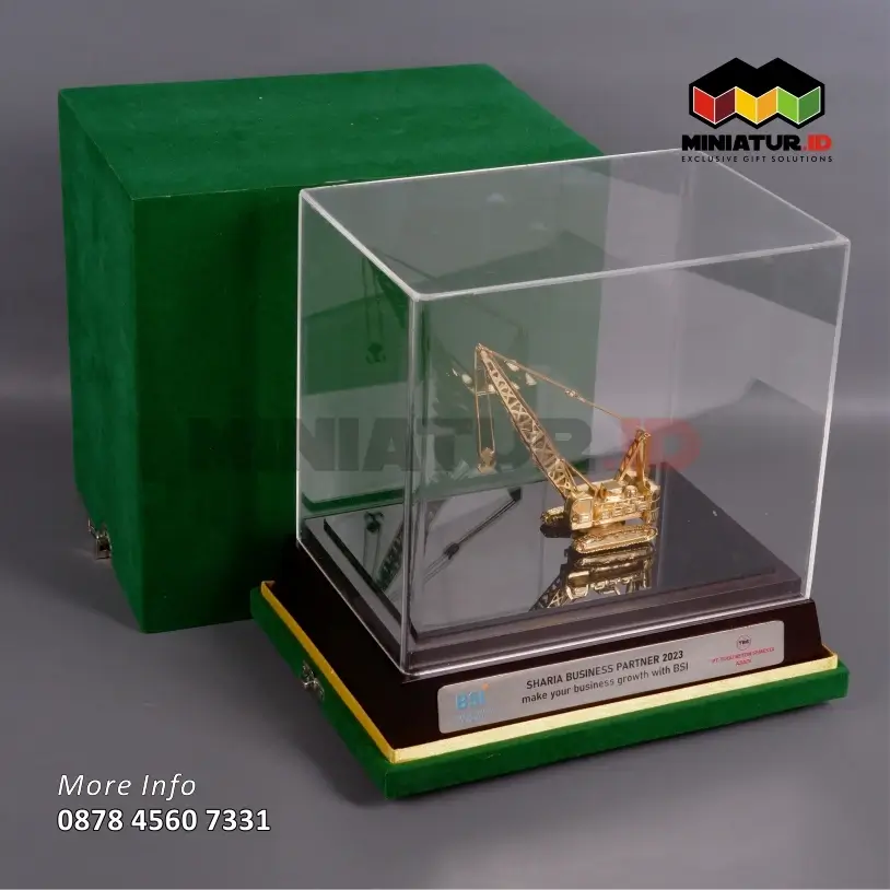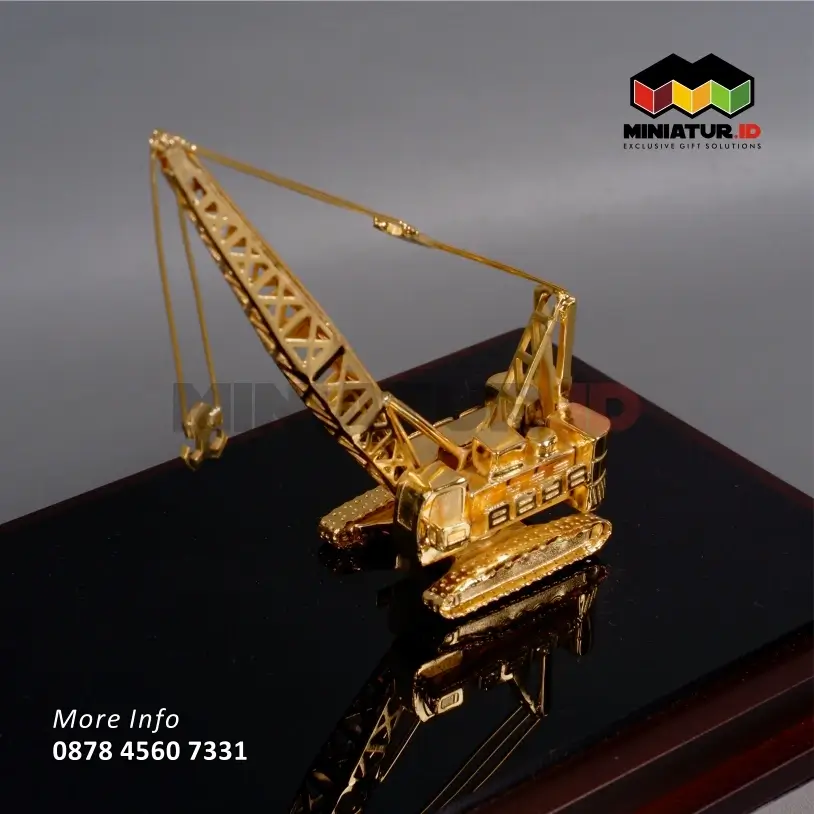 Mempersembahkan kerajinan seni miniatur model alat berat excavator crane untuk cinderamata atau penghargaan acara Sharia Business Partner.