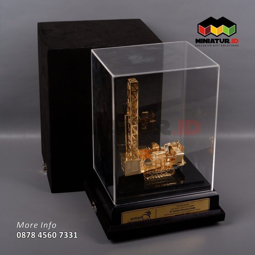 Mempersembahkan kerajinan seni miniatur model drilling rig sebagai bentuk ucapan terima kasih atas kepercayaannya kepada PT Antam Resourcindo.